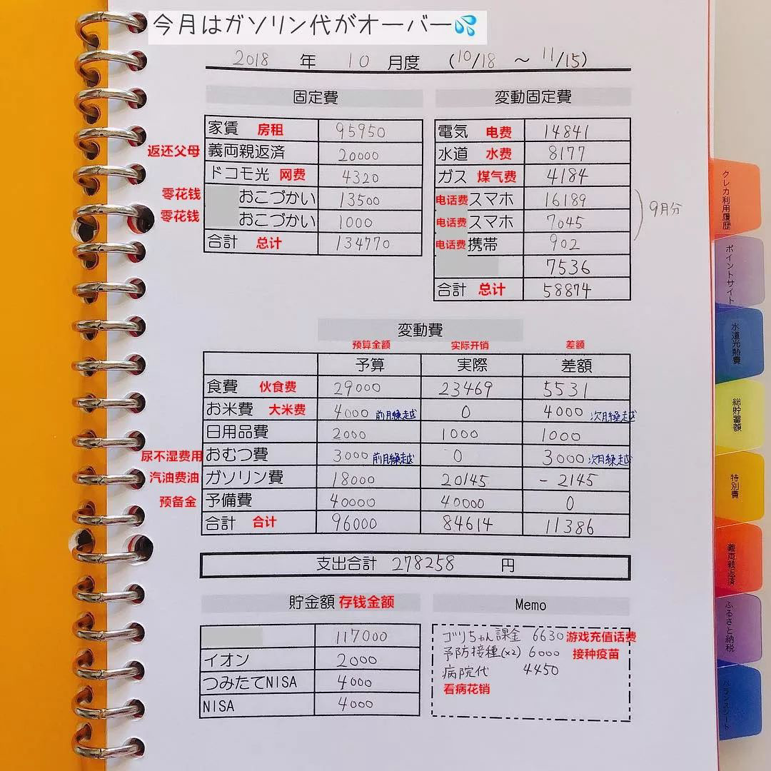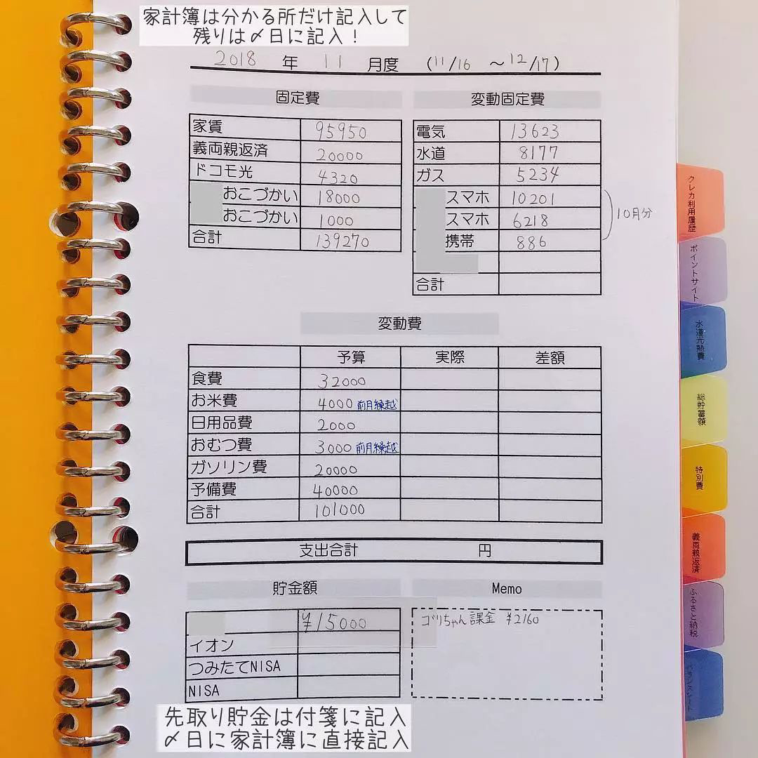 Chồng Nonoko có thu nhập hàng tháng tầm 500.000 yên (khoảng 105 triệu đồng). Vào ngày anh lĩnh lương hàng tháng, cô sẽ phân loại và lập kế hoạch cho từng khoản tiền, sau đó nhập chúng vào các sổ tài khoản khác nhau.